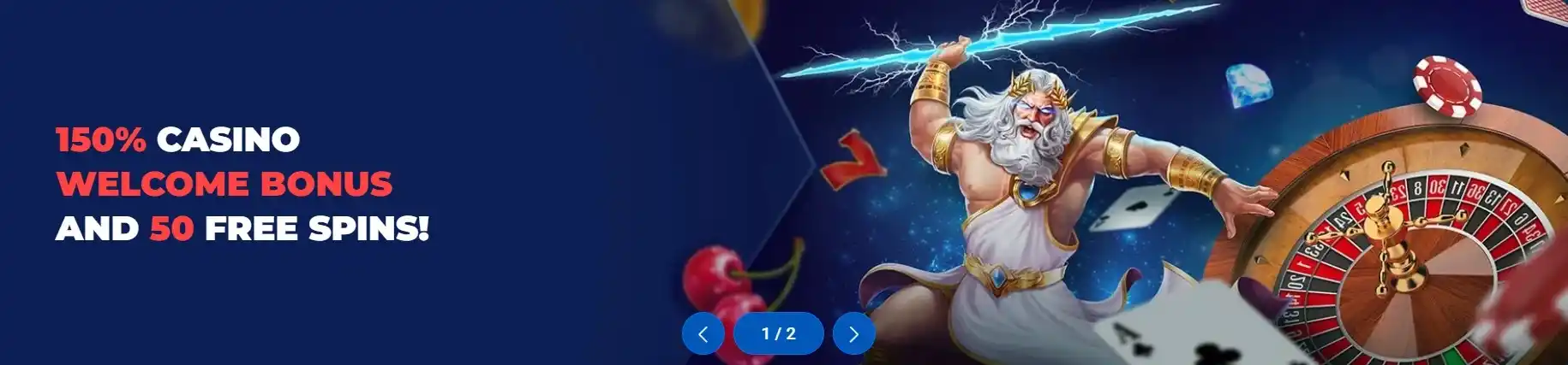 Bonus type: Welcome Bonus, Casino Match Bonus, First Deposit Bonus, Deposit Bonus