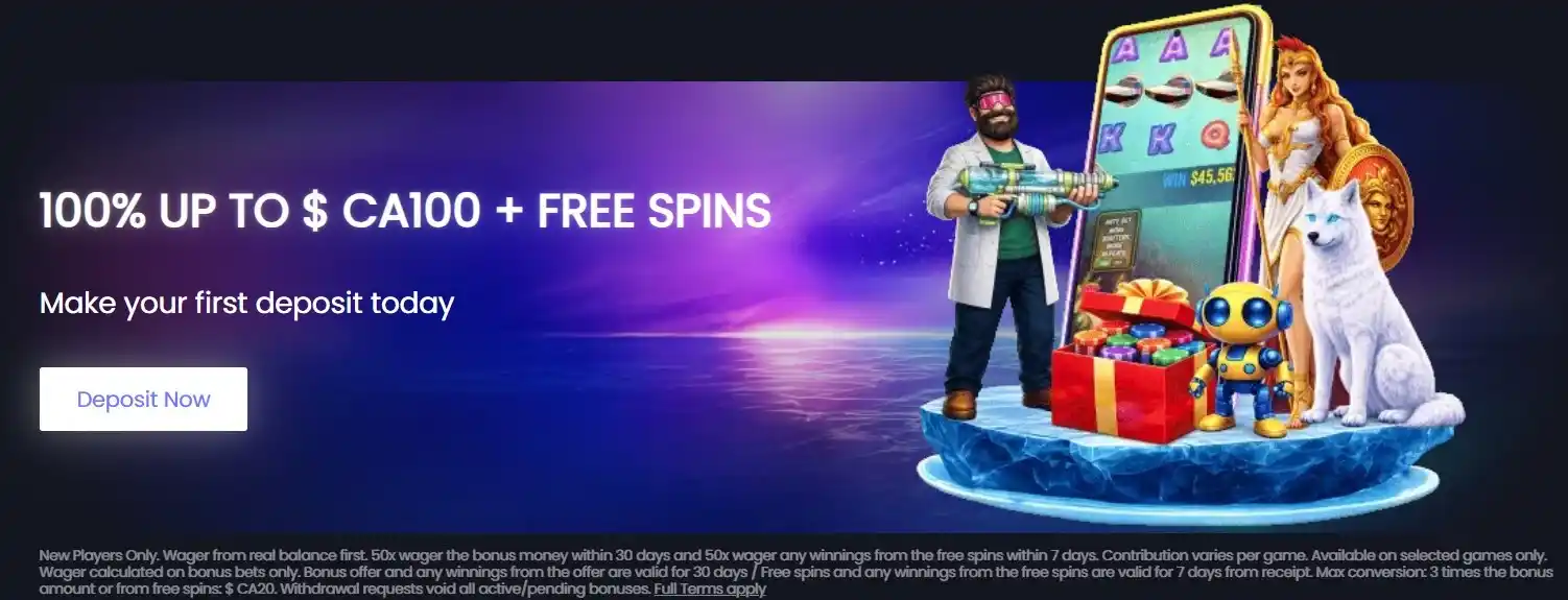 100% up to C$100 + 10 Free Spins