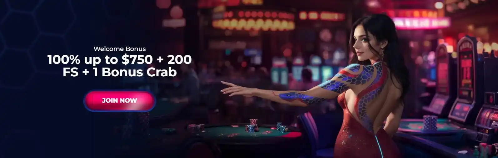 100% up to C$750 + 200 FS + 1 Bonus Crab
